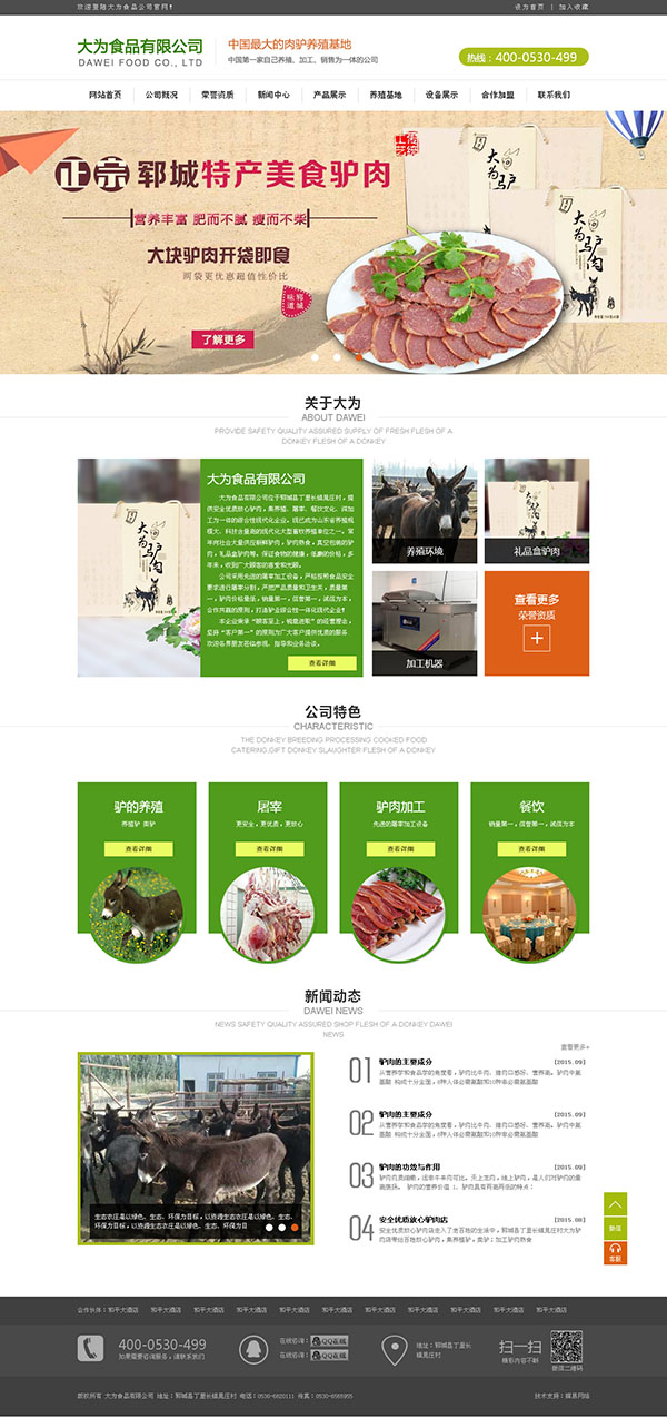 大為食品有限公司集養(yǎng)殖、屠宰、餐飲文化、深加工為一體的綜合性現(xiàn)代化企業(yè)。